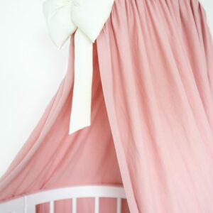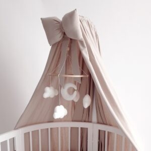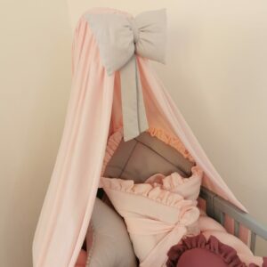 Bavlněná nebesa s mašlí vytvoří vašemu děťátku kouzelný prostor na spánek, hraní či odpočinek. Díky držáku na nebesa se dají snadno zavěsit nad dětskou postýlku a vytvořit tak miminku jeho vlastní malé království. Nebesa rozvíjí dětskou představivost a poskytují děťátku pocit ochrany a soukromí, když jej právě potřebuje. Zároveň během dne tlumí světlo v pokoji, čímž připívají ke zlepšení spacích návyků.