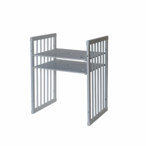 - Odkládací pult se dvěma poličkami (střední část postýlky), který může v čase využívání mini postýlky v nejmenším tvaru sloužit na ukládání dětských věcí.