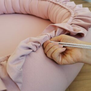 Naše dětská kulatá hnízdečka jsme navrhli s maximálním důrazem na jejich praktičnost a dlouhé využití. Jejich součástí je skrytá stahovací šňůrka, kterou si můžete průměr hnízdečka zvětšovat a zmenšovat, a to až v rozpětí 25 cm. Hnízdo tak může růst s vaším děťátkem. Součástí hnízdečka je zip, díky němuž můžete vyndat matrac a výplň boků a zbytek hnízdečka vyprat.