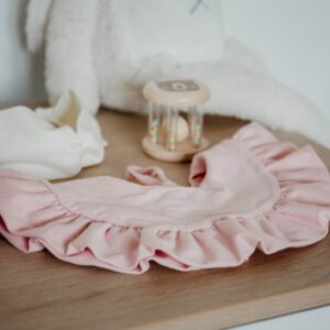 Dětský bavlněný bryndák s volánem pomůže při krmení a prořezávání zoubků. Kvalitní, ručně šité bryndáčky mnoha tvarů, barev a vzorů.