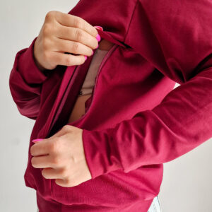 Mikina je vybavena skrytými, diskrétními zipy po obou stranách, takže si můžete zvolit, ze které strany budete kojit – rychle, pohodlně a bez zbytečného odhalování.