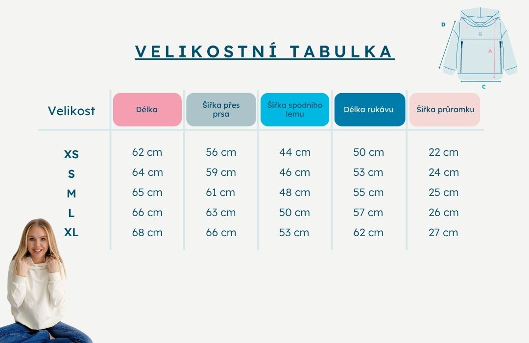 Velikostní tabulku si pohodlně prohlédněte nad výběrem barvy produktu.