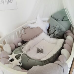 Stylové mušelínové hnízdo, díky kterému bude vaše děťátko během spánku v bezpečí.