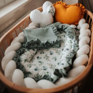 Stylové mušelínové hnízdo s volánem, díky kterému bude vaše děťátko během spánku v bezpečí.