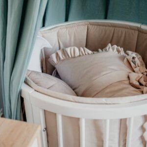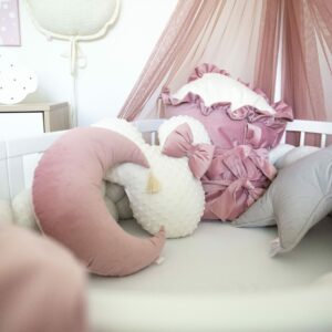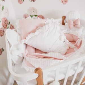 Zavinovačka velvet s volánem plněná husím peřím o rozměru 80 × 80 cm uklidní vaše děťátko a navodí mu pocit bezpečí a jistoty.