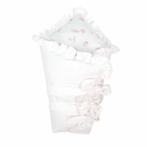 Péřová zavinovačka velvet s volánem/ peřinka poskytuje miminku pocit jistoty a bezpečí jako v bříšku, usnadňuje jeho přenášení a v neposlední řadě přispívá ke správnému vývoji zad děťátka. Je potvrzené, že zavinování v prvních měsících života děťátka velmi pozitivně působí na jeho vývoj. Zavinovačka slouží k uklidnění nervového systému děťátka a pomáhá mu udržovat tělesnou teplotu.