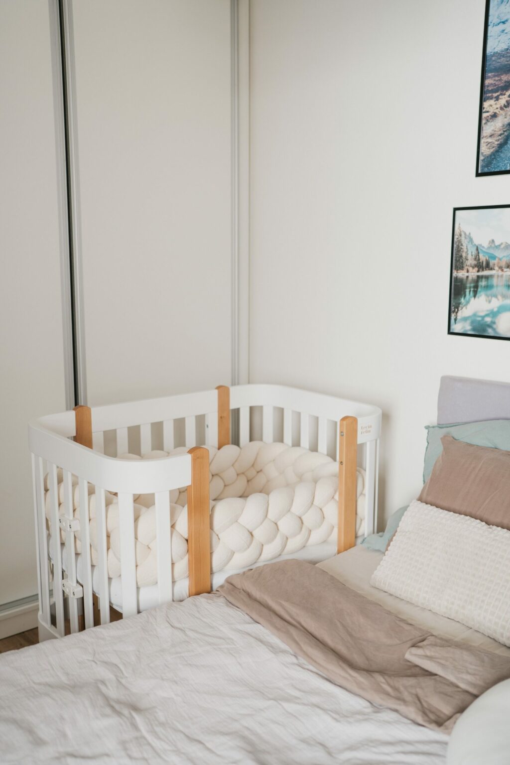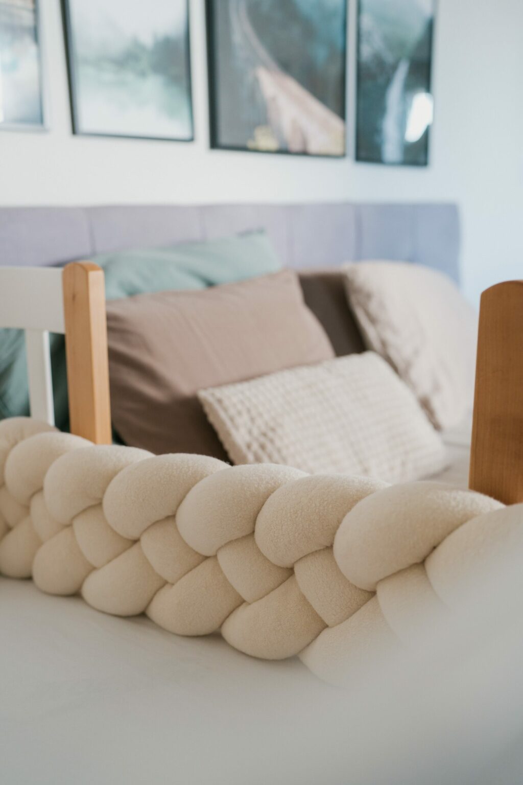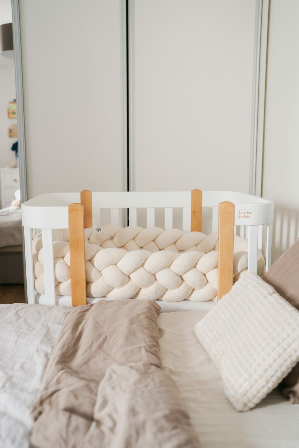 Ochranný mantinel do postýlky ve tvaru pletence ve čtyřpramenném provedení v bio bavlně!