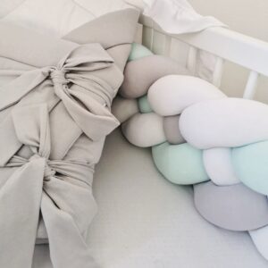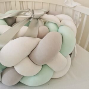 Ochranný zaplétaný mantinel-pletenec slouží jako ochrana vašeho děťátka v postýlce, a zároveň jako stylový doplněk do dětského pokoje. Díky měkkosti našeho mantinelu se nemusíte obávat zranění vašeho děťátka o bočnice, když bude v noci cestovat po postýlce. Jeho největší výhodou je, že se k tyčím postýlky nemusí přivazovat, a i přesto drží na místě. Když přestanete pletenec v postýlce využívat jako mantinel, jednoduše jej smotáte a použijte v dětském koutku jako příjemnou a měkkou sedací podložku. Mantinel nabízíme v rostoucí alternativě k našim Smart Bed postýlkám, ale i standardně v různých délkách (od 180 cm do 400 cm). Na přání vám samozřejmě ušijeme i pletenec v délce podle vašich požadavků.