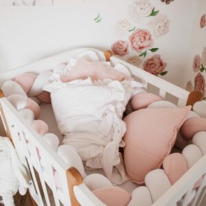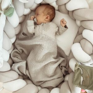 Ochranný zaplétaný mantinel-pletenec slouží jako ochrana vašeho děťátka v postýlce, a zároveň jako stylový doplněk do dětského pokoje. Díky měkkosti našeho mantinelu se nemusíte obávat zranění vašeho děťátka o bočnice, když bude v noci cestovat po postýlce. Jeho největší výhodou je, že se k tyčím postýlky nemusí přivazovat, a i přesto drží na místě. Když přestanete pletenec v postýlce využívat jako mantinel, jednoduše jej smotáte a použijte v dětském koutku jako příjemnou a měkkou sedací podložku. Mantinel nabízíme v rostoucí alternativě k našim Smart Bed postýlkám, ale i standardně v různých délkách (od 180 cm do 400 cm). Na přání vám samozřejmě ušijeme i pletenec v délce podle vašich požadavků.