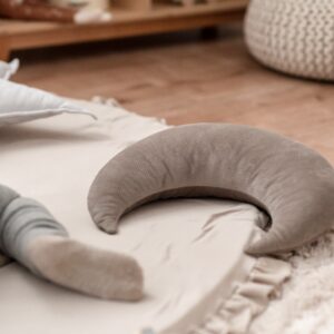 Dekorační polštáře jsou unikátními doplňky v dětském pokoji. Vytváří útulnou atmosféru, a zároveň slouží jako neotřelý doplněk, který interiéru dodává styl a šmrnc. V současné době je k dostání mnoho variant a provedení, které překypují roztomilostí. Jednou z možností je i náš dětský dekorační polštářek ve tvaru měsíčku. Je z matného velvetu, který zaručuje maximální pohodlí a její vzhled působí příjemně, a zároveň stylově. Na konci měsíčku je střapec, který celému dekorativnímu polštářku dodává šmrnc.