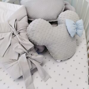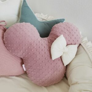 Polštář Monie je skvělá volba, protože svým tvarem s velkými roztomilými oušky zaujme děťátko už od útlého věku. Je doplněný barevnou mašlí (pokud si přejete polštář bez mašle, stačí nám to napsat do poznámky k platbě). Povrch polštáře tvoří heboučký minky plyš , který si můžete zvolit buď hladký, nebo vypouklý. Mašle je ze 100% bavlny (lesklá ze 100% polyesteru), a můžete si ji sladit s dalšími textilními doplňky, jako jsou prostěradla, baldachýn či nebesa. K polštáři Monie doporučujeme koupi naší dětské deky, s níž si jej materiálově i barevně dokonale sladíte.