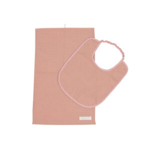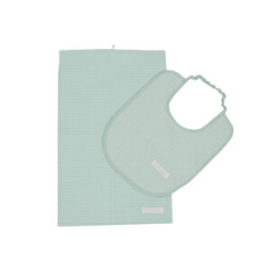 Ručník ze 100% bavlny, který skvěle saje vodu a perfektně padne do dětských ručiček spolu s bryndákem s gumičkou ze stejného materiálu, který si vaše děťátko nasadí i samo.