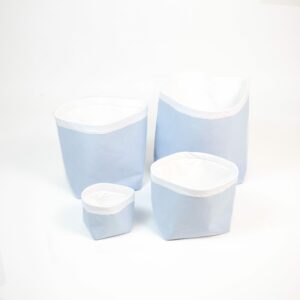 Set čtyř úložných košů (XS, S, M, L) je proto unikátním kouskem, který by v dětském pokoji neměl chybět. Větší košíky (M, L) jsou skvělé na uchování hraček a naopak menší dětské úložné boxy (XS, S) jsou ideální na uspořádání kosmetiky, plenek či jiných menších předmětů v pokoji. Úložné koše jsou vyrobeny z kvalitního materiálu, kterým je 100% bavlna v kombinaci s netkanou textilií. Díky tomu jsou pevné, drží svůj tvar a veškerý obsah udrží hezky pohromadě. U našich košíků si můžete vybrat barvu jak vnější, tak i vnitřní strany, což vám dodává volnou ruku při vytváření barevné kombinace přesně podle vašich představ a preferencí. Na výběr je mnoho barevných variací, z nichž si zaručeně vyberete tu pravou.