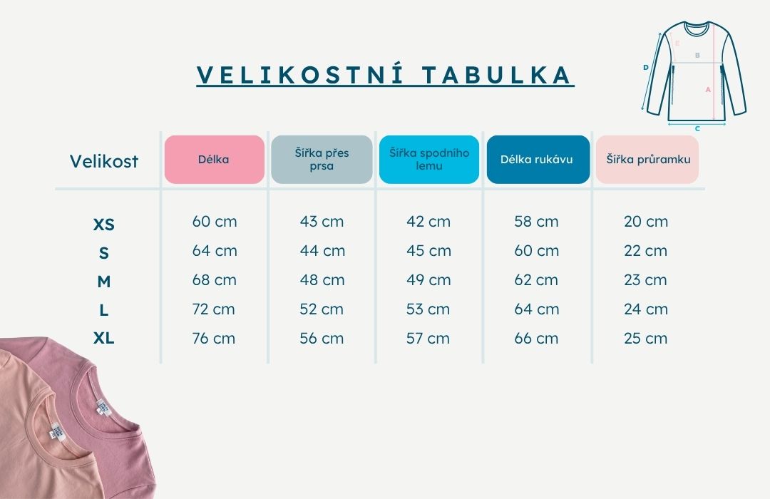 Velikostní tabulku si pohodlně prohlédněte nad výběrem barvy produktu.