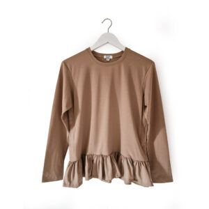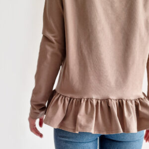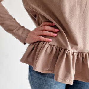 Jednoduché, pohodlné a navržené s ohledem na každodenní potřeby maminek. Toto basic tričko na kojení s dlouhým rukávem doplňuje jemný volán na spodním lemu, který dodává něžný a ženský detail, ale přitom si tričko zachovává svůj minimalistický styl. Je ideální na běžné nošení – snadno ho zkombinujete s čímkoliv ve svém šatníku.