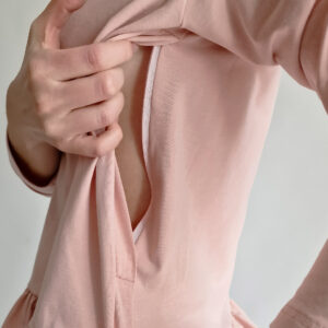 Basic tričko na kojení s dlouhým rukávem a jemným volánem na spodním lemu. Skryté zipy po stranách umožňují pohodlné a diskrétní kojení.