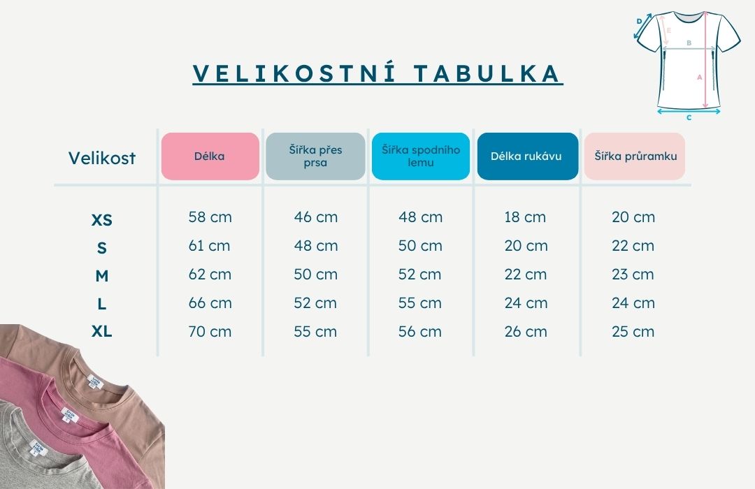 Velikostní tabulku si pohodlně prohlédněte nad výběrem barvy produktu.
