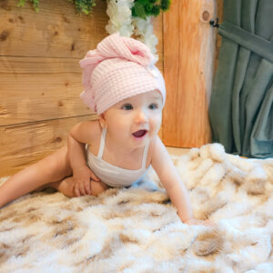 Dětský turban na mokré vlasy z kvalitní vafle bavlny, která je šetrná k vlasům a výborně saje vodu.