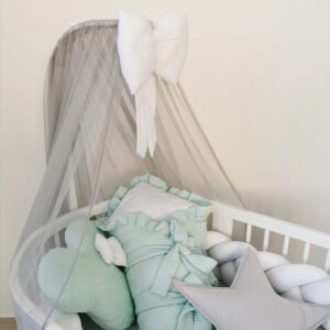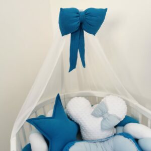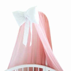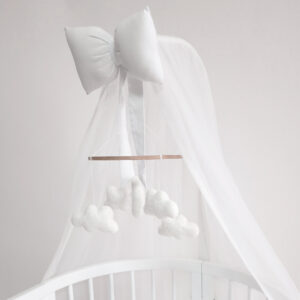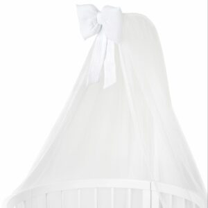 Tylová nebesa s mušelínovou mašlí vytvoří vašemu děťátku kouzelný prostor na spaní, hraní či odpočinek. Díky držáku na nebesa se dají snadno zavěsit nad dětskou postýlku a vytvoří tak miminku jeho vlastní malé království. Nebesa rozvíjí dětskou představivost a poskytnou mu pocit ochrany a soukromí, když jej právě potřebuje. Zároveň během dne tlumí světlo v pokoji, takže přispívají ke zlepšení spacích návyků.