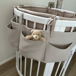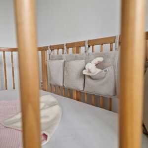 Praktický organizér ze 100% bavlny pomůže při skladování drobností, které potřebujete mít vždy po ruce. Díky univerzálnímu úchytu se suchým zipem organizér perfektně padne na jakoukoliv postýlku.