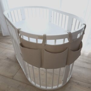 Praktický organizér – kapsář pomůže při skladování drobností, které potřebujete mít u dětské postýlky při ruce – dudlík, plenky či oblíbená hračka. Univerzální organizér se skládá ze 3 kapes. Díky uchycení pomocí suchého zipu organizér perfektně sedí na jakoukoliv postýlku (rostoucí nebo standardní). Nejen, že je suchý zip dostatečně dlouhý, díky čemuž si můžete uchycení regulovat, ale u tenkých tyčí postýlky je možné úchyt v případě potřeby omotat i vícekrát.