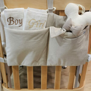 Praktický organizér ze 100% bavlny pomůže při skladování drobností, které potřebujete mít vždy po ruce. Díky univerzálnímu úchytu se suchým zipem organizér perfektně padne na jakoukoliv postýlku.