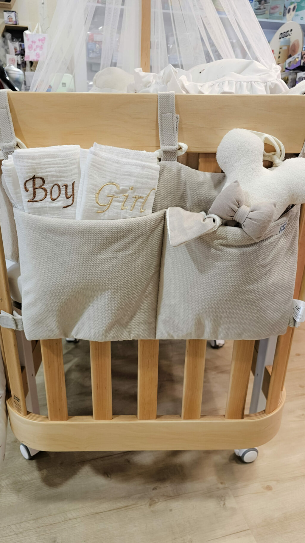 Univerzální velvet organizér na dětskou postýlku – S